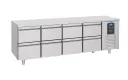 Een professionele gekoelde werkbank van Combisteel, ideaal voor keukens waar ruimte beperkt is. Hiermee creëert u extra werkoppervlak en extra opslag. Met 8 laden, gebruiksvriendelijke bediening, automatische ontdooiing en geforceerde koeling.