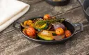 Bereid en serveer eten met een sissend gevoel met deze gietijzeren ovale orenschotel van Olympia. Het gerecht is ovenbestendig en ontworpen voor bediening van oven tot tafel - wat betekent dat u minder gerechten hoeft te bereiden en uw doorlooptijd kunt versnellen door tijd te besparen bij het opdienen. Bovendien is de schaal met oren voorzien van twee stevige handvatten die gemakkelijk te dragen zijn, waardoor het risico op vallen en morsen wordt verminderd. Het gietijzer is niet alleen ongelooflijk sterk, maar heeft ook een authentieke uitstraling die een rustieke charme aan uw servies toevoegt en indruk maakt op de gasten met de presentatie van hun maaltijd. Voor extra gemak kan de schaal op alle kookoppervlakken worden gebruikt, inclusief inductiekookplaten.