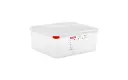 Luchtdichte, gastronorm voedseldozen met deksel. De dozen worden geleverd met 4 kleurcode clips (rood, geel, groen en blauw) en zijn voorzien van een permanent, eenvoudig schoon te vegen label zodat de inhoud gemakkelijk te identificeren is. Te gebruiken in een voedsel roulatiesysteem. Geschikt voor temperaturen van -40°C tot +95°C en ideaal voor in iedere keuken.
