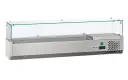 Opzetvitrine met statische koeling, voor garnituren, geschikt voor GN-Bakken 6 x 1/4 GN. De vitrine is voorzien van een elektronische besturing. De modellen zijn voorzien van een condensverdamper en een glazenopbouw als hoestruit. Inclusief verbindingsstukken