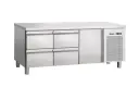 De koelwerkbanken van Bartscher zijn van de hoogste kwaliteit. Deze geforceerde koelwerkbank is ideaal voor horeca met een kleine keuken., met eenvoudig te reinigen werkblad. FCKW-vrij, 1 deur, 4 lades. 1 /1 GN, 150 mm diep, uitschuifbaar pootjes tot 50 mm.