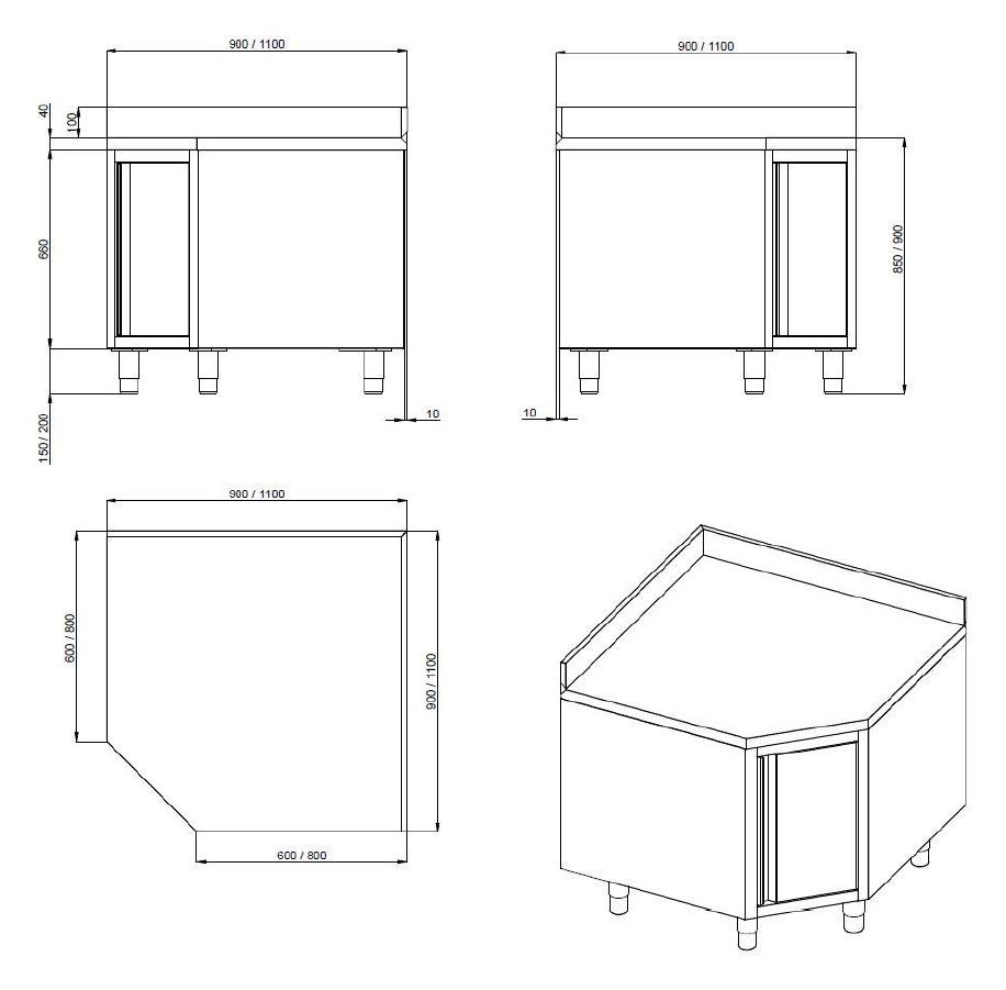 RVS hoek werktafel met deur en achteropstand waardoor ze ideaal zijn voor gebruik in drukke horeca keukens. Ook zeer geschikt voor keukens met beperkte ruimte.
