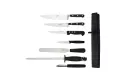 7-delige messenset en foudraal van Déglon Sabatier. De set bevat het volgende: 20,5cm koksmes, 15cm fileermes, 15cm uitbeenmes, 7,5cm schilmesje met zwart heft, 20,5cm paletmes en 25,5cm aanzetstaal. In zwarte foudraal.