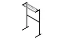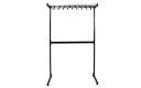 Vrijstaand garderoberek met 19 haken die in een rails onder de balk hangen. Mogelijk om garderoberek tegen de wand te plaatsen.