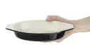 Gietijzeren gratineerschaal met roomwitte binnenkant en aantrekkelijke, zwarte buitenkant. Het gietijzer zorgt voor een gelijkmatige warmteverdeling en door de schaal te behandelen tegen roest en aanbakken, behoudt deze zijn anti-kleeflaag en blijft roestvrij. Geschikt voor alle warmtebronnen; gas, elektrisch, inductie en keramisch. Vanwege het gietijzer blijft voedsel langer warm.