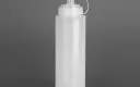 Deze transparante knijpfles is gemaakt van flexibel polyethyleen en heeft een schroefdop en wijde hals, voor eenvoudig bijvullen. Dankzij de polyethyleen constructie is de fles duurzaam, sterk en eenvoudig te reinigen. Deze doorzichtige fles is perfect voor allerlei soorten sauzen, van ketchup en mosterd tot mayonaise en knoflooksaus. Bovendien kunt u de fles gebruiken om borden of desserts te decoreren. Voor gebruik dient de spuitmond op gewenste grootte geknipt te worden.