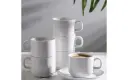 Een zeer uitgebreide lijn puur wit porselein van een zeer sterke vitro kwaliteit wat een lange levensduur garandeerd. Multi-functionele items die stapelbaar en extra versterkt zijn door de gerolde kanten. Oven, magnetron, vriezer en vaatwasmachine bestendig.