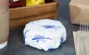 Een grote partij blauw, vetvrij papier voor warme gerechten zoals hamburgers of hotdogs; maken het klanten gemakkelijker om hun eten mee te nemen.