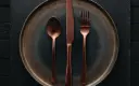 Zeer modern koper bestek van Olympia. Dit bestek is trendy en de kwaliteit toonaangevend.