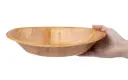 Deze grote, houten, ovale kom is ideaal voor het presenteren van fruit en brood, maar ook vele andere producten. De kom is stapelbaar, licht en voorzien van een mooi patroon. Een veelzijdig product, perfect voor buffetten, hapjes en informele diners.