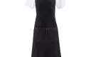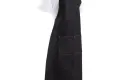 Trendy zwart denim schort met verstelbare nekband. Dit schort kenmerkt zich door de perfecte pasvorm en het fijne materiaal. De lange contrasterende banden en naden geven een moderne, industriële ook. Gemakkelijk wasbaar en blijvende pasvorm. Geschikt voor dames en heren.