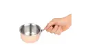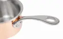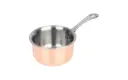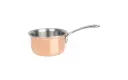 Mini sauspan met sandwichlaag van aluminium tussen twee lagen RVS en een koperen buitenlaag, voor een snelle en gelijkmatige warmteverdeling. Geschikt voor alle warmtebronnen, behalve inductie. De pan is voorzien van een geklonken handvat voor een betere grip, is vaatwasmachinebestendig, meet 5,5(h) x 9(Ø)cm en heeft een capaciteit van 0,33ltr.