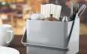 Trendy gegalvaniseerde tafelcaddy van Olympia. Deze is ideaal voor bestek, servetten, sauzen en bijvoorbeeld peper en zout ,voorzien van een geklonken hengsel. De tafelcaddy geeft jarenlang gebruiksplezier.