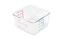 Polycarbonaat voedseldoos met getextureerde bodem om schuiven tegen te gaan. Eenvoudig te stapelen, ruimtebesparend en voorzien van een maatverdeling. De voedseldoos is verkrijgbaar in 7 praktische afmetingen en gemaakt van stevig, transparant polycarbonaat.