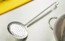 Deze RVS schuimspaan is stevig en betrouwbaar en perfect om voedsel uit heet water of hete olie te scheppen. Het ideale keukengerei voor professionele keukens, van restaurants tot afhaalgelegenheden.