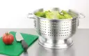 Was versgewassen groenten of giet gekookte rijst en pasta snel een eenvoudig af met behulp van dit vergiet van Vogue. Het vergiet is voorzien van 2 stevige handvatten zodat hij makkelijk op te pakken en te schudden is. Dankzij de aluminium constructie is het vergiet ook zeer robuust en gaat hij lang mee, ook bij intensief gebruik in een drukke keuken. Het vergiet is ook zeer eenvoudig in een pan te zetten om uit te lekken.