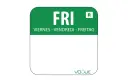 Kleurcode stickers en dispenser voor voedseldozen (afzonderlijk te bestellen) . Eenvoudig voor de organisatie en het overzicht van het opgeslagen voedsel. Verlaagt het afvalpercentage en verbetert de rentabiliteit. Volledig in overeenstemming met de HACCP regelgeving. De stickers kunnen eenvoudig verwijdert worden zonder plakresten achter te laten. Speciaal gemaakt voor koude applicaties. Onder de dag bedrukking is ruimte om een datum te schrijven.