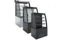 De koeling is uitgevoerd met een zwarte binnen- en buitenzijde, glazen zijwanden en interne LED-verlichting, wat zorgt voor optimale zichtbaarheid van uw producten en een moderne uitstraling. De ruimtebesparende schuifdeuren maken het apparaat gebruiksvriendelijk en praktisch in drukke winkelomgevingen.