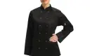 Vegas Koksbuis. Zwarte unisex uitvoering. polyester/katoen (65%/35%). Dubbele sluiting met drukknopen. Dubbel gestikte naden en Franse manchetten op de lange mouwen.