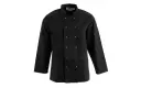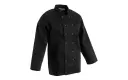 Vegas Koksbuis. Zwarte unisex uitvoering. polyester/katoen (65%/35%). Dubbele sluiting met drukknopen. Dubbel gestikte naden en Franse manchetten op de lange mouwen.